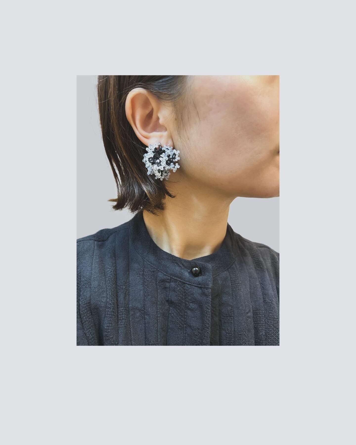 黒×白の耳飾り。