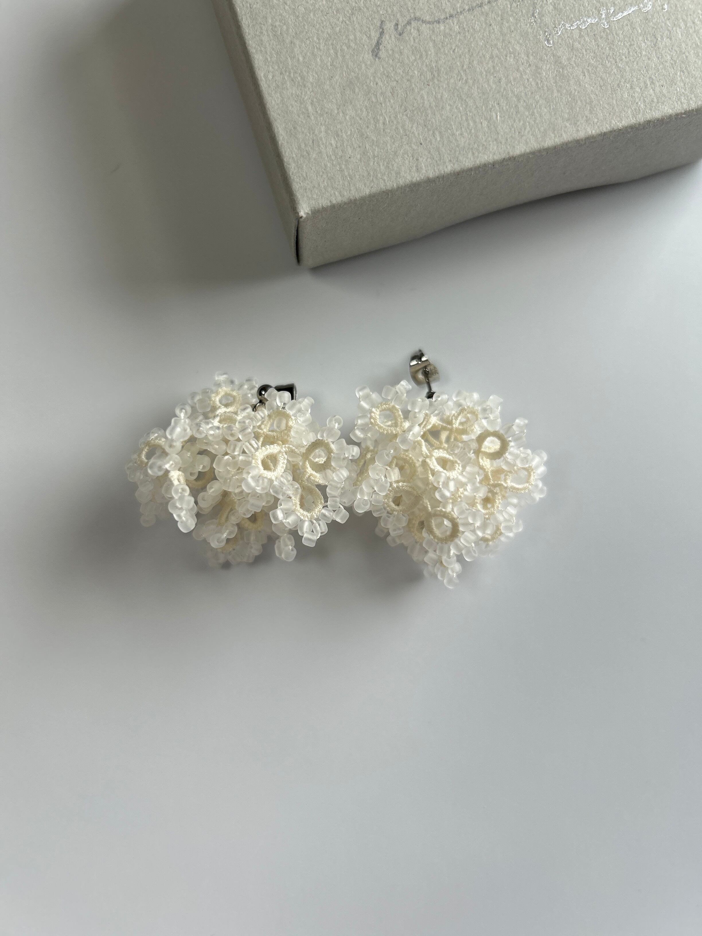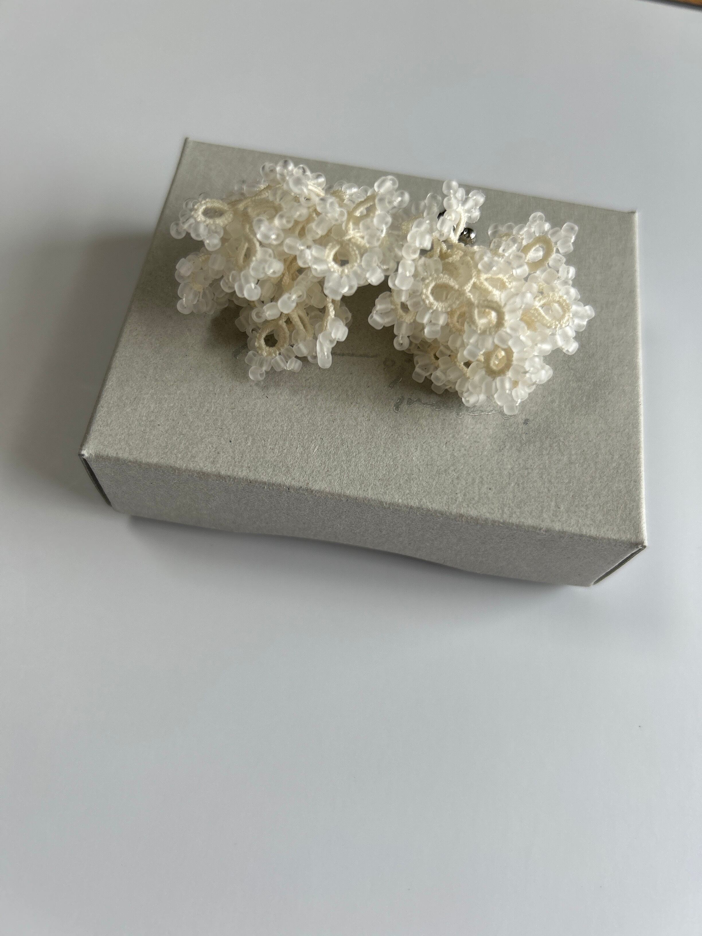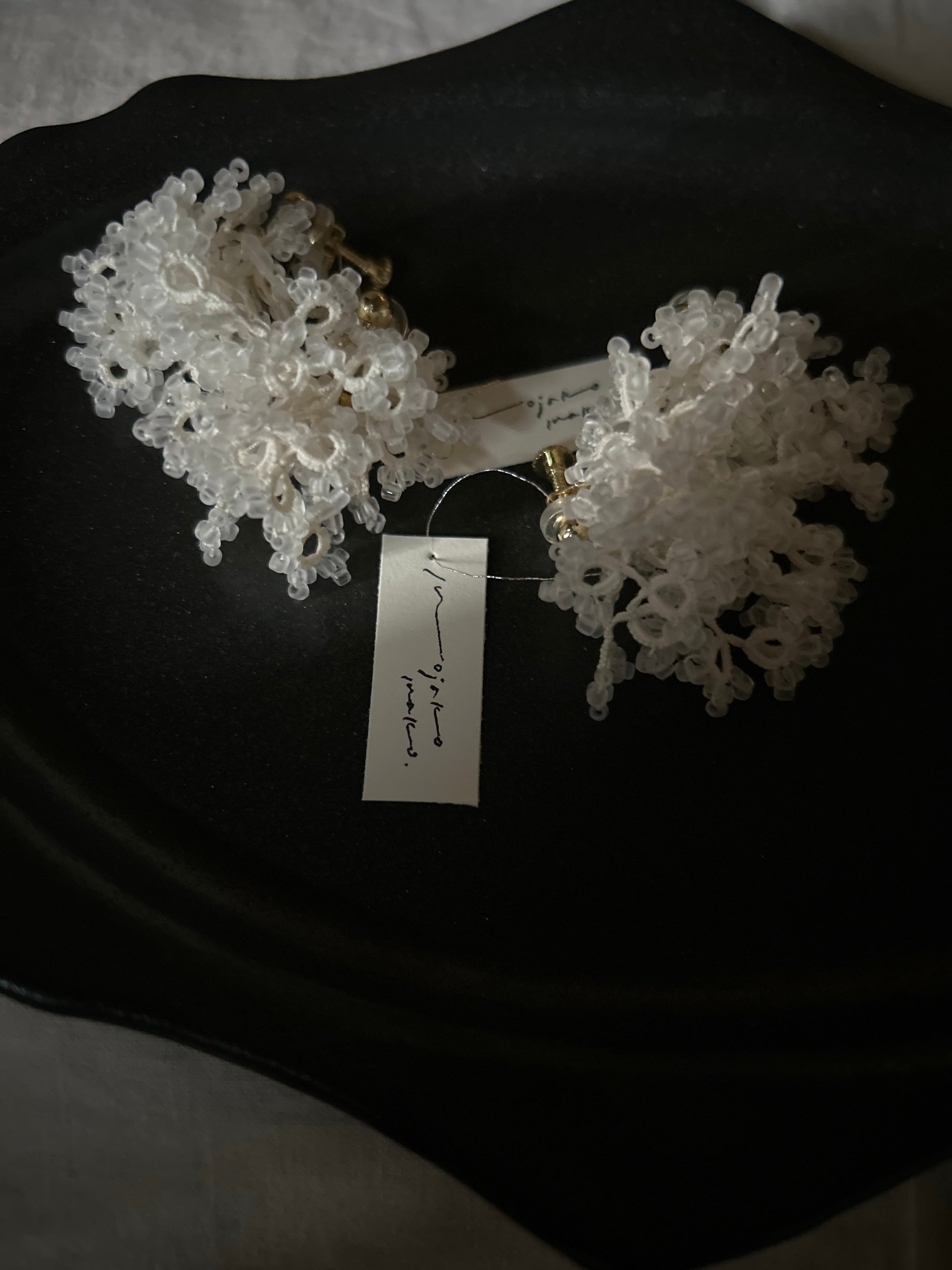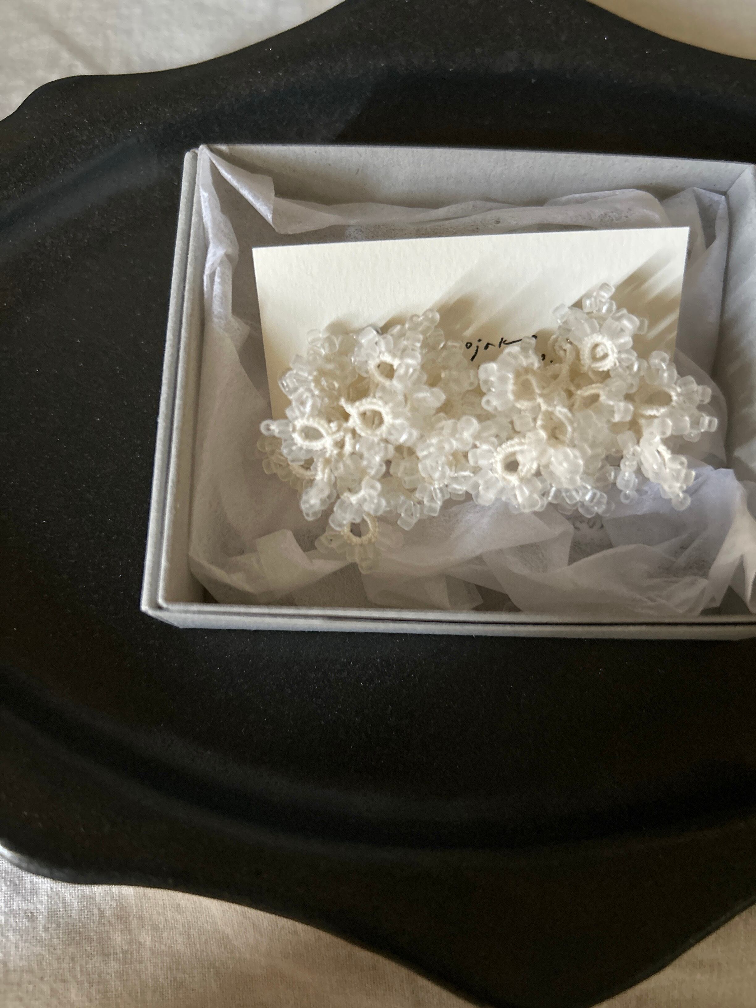 糸とビーズのみのとても繊細な作りになっております。無理な力が加わるとほつれや破損の原因となりますので、着脱時など取り扱いには十分お気をつけください。